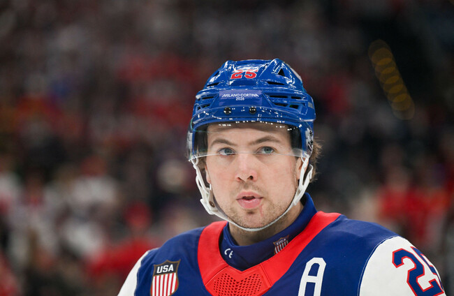 Charlie McAvoy (USA) during the Winter Olympic Games Alamy Stock Photo