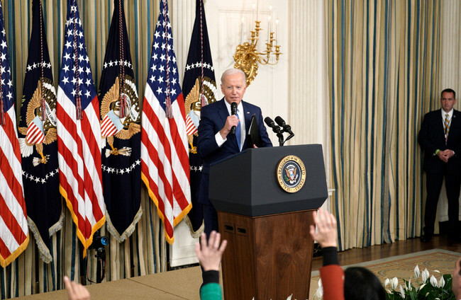 US President Joe Biden delivering remarks on midterm elections in the State Dinning Room at the White House yesterday Alamy Stock Photo