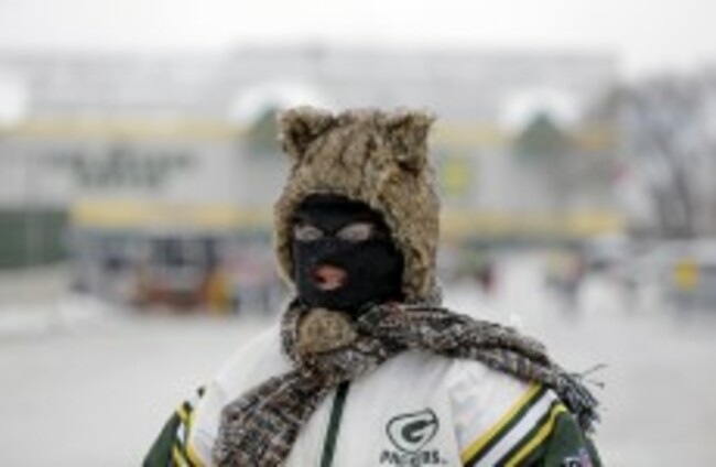 A Green Bay Packers fan is seen bundled up before the NFL wild-card playoff football game between the Green Bay Packers and the San Francisco 49ers AP Photo/Jeffrey Phelps