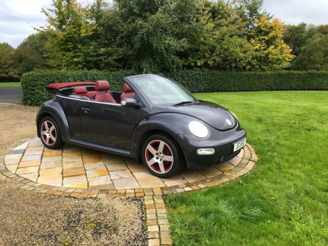 This convertible Beetle is the Dark Flint model and comes with anthracite bodywork with Garnet Red hydraulically-operated roof and Bordeaux red leather interior trim. This car also comes with colour coded alloys.
