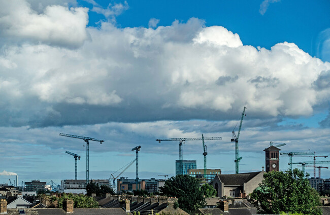 Cranes in the East Wall and Docklands area of Dublin in May.