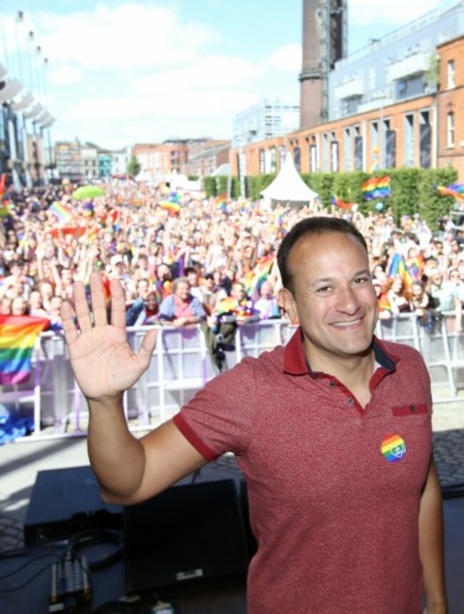 TAOISEACH LEO VARADKAR joined tens of thousands of people at Dublin Pride today, and told crowds at Smithfield that the fact that Ireland has a gay Taoiseach is not something he would ask anyone to celebrate.