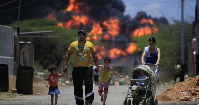 A large fire rises over the Amuay refinery on Saturday. (AP Photo/Ariana Cubillos/PA)