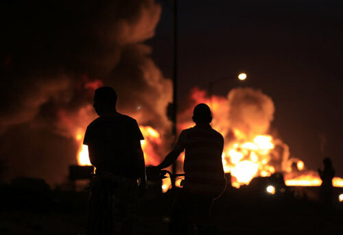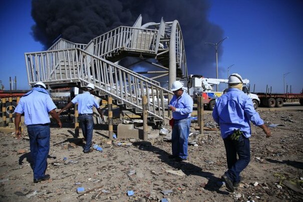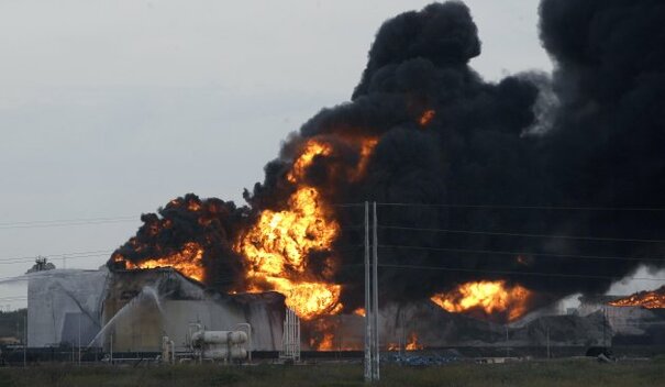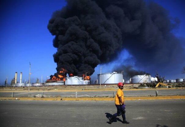 The fire began after an explosion at the facility and spread to three fuel tanks. At least 41 people have died, about half of whom were National Guards assigned to protect the refinery, and scores more were injured.