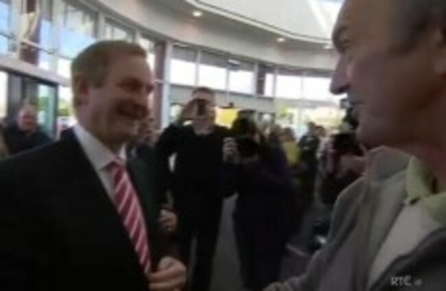 A man identified in today’s Irish Times as Peadar Doyle confronted Kenny as he arrived at the shopping centre during canvassing for a Yes vote in the upcoming Fiscal Compact referendum.