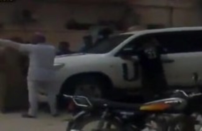 This video posted online shows the vehicle (to the left of the screen) sustain damage, before the convoy sped away from the scene