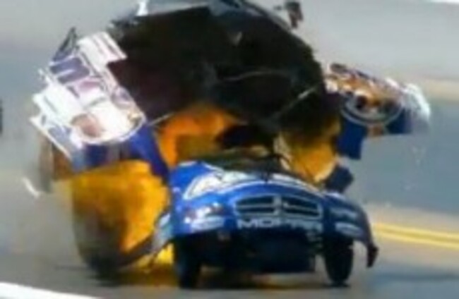 Spectators at the Four-Wide Nationals in Charlotte, North Carolina, witnessed the explosion of the 8,000 horsepower funny car, as it is known. Hagan climbed from the wreckage in a huff and tossed a scrap of bodywork to the ground before stomping off the tarmac.