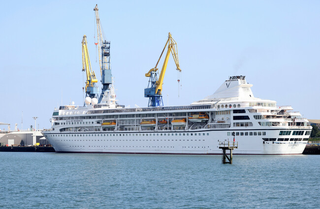 Villa Vie Odyssey docked in Belfast Harbour four months ago. Alamy Stock Photo