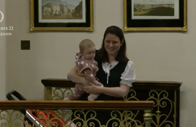 Violet-Anne Wynne TD with her baby in the Dáil chamber Screengrab/Oireachtas TV