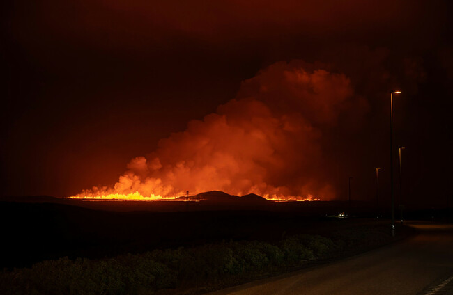 The volcano is a few kilometers northeast of Grindavik, a coastal town of 3,800 people about 50 kilometers southwest of Iceland’s capital Reykjavik.