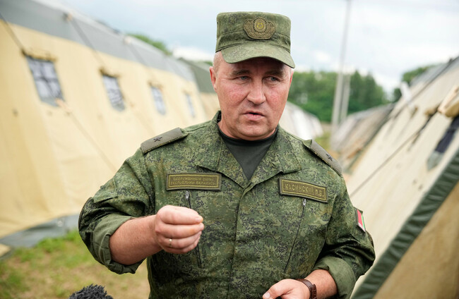 Maj. Gen. Leonid Kosinsky, an assistant to Belarus' defense minister, telling media that Russia's Wagner military contractor could use the army camp near Tsel if it relocates to Belarus on 7 July. Alamy Stock Photo