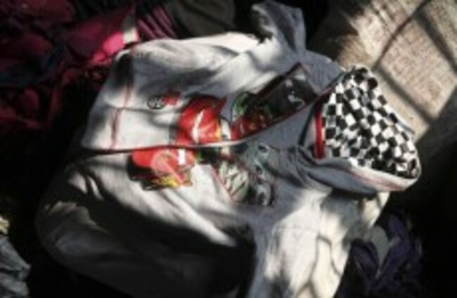 A Disney brand hoody lays among the equipment charred in the fire that killed 112 people. (AP Photo/Ashraful Alam Tito)