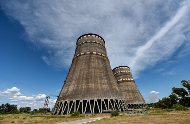 Two cooling towers are pictured on the premises of the Zaporizhzhia Nuclear Power Plant. ABACA/PA Images