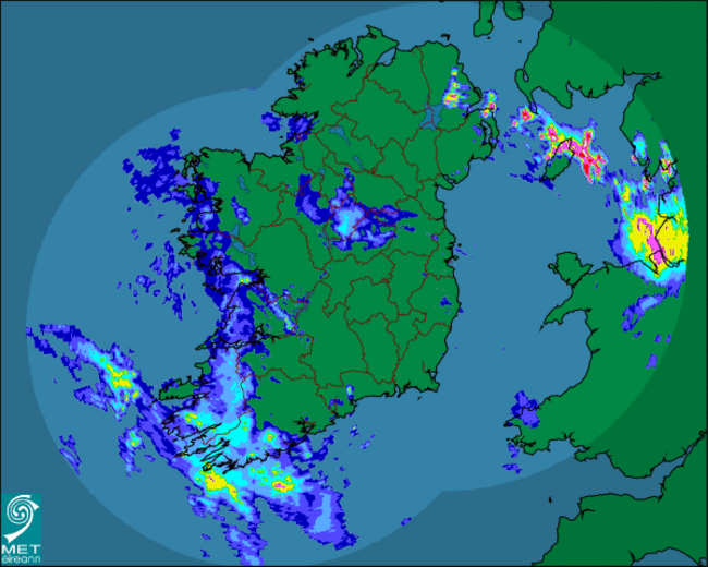 Met Éireann’s rain radar. Yes, that blue stuff is rain.