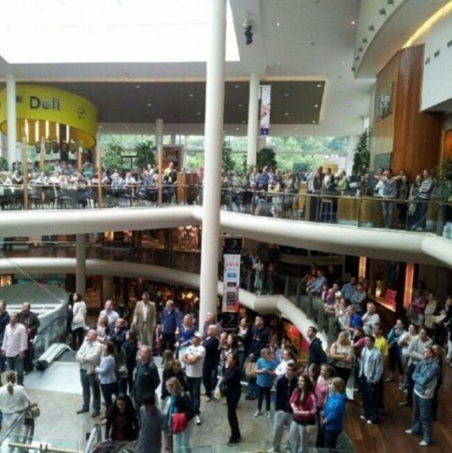Many places around the country saw people grind to a halt on Monday for Taylor’s quarter final win, like these shoppers in Dundrum: