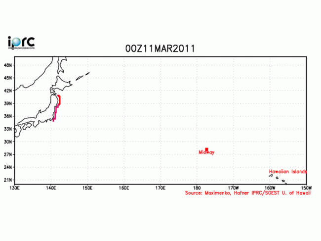 Homes, boats, cars, household appliances and other objects were washed into the ocean following the tsunami last year. This animated model shows how it is still moving across the Pacific.