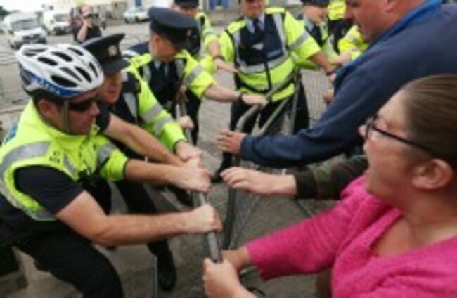 Anti water charge protesters struggle with gardaí at an event in Dublin last month. Sam Boal