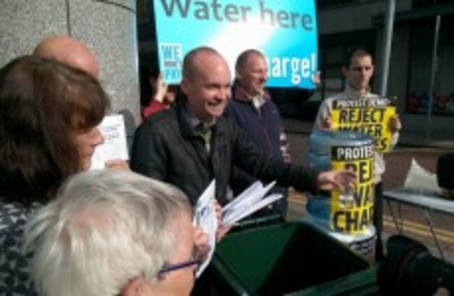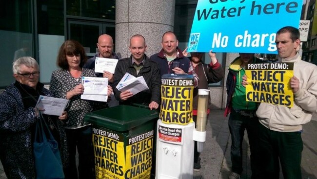 WATER CHARGE PROTESTS continued today with Anti Austerity Alliance representatives staging a demonstration outside Irish Water headquarters earlier today, urging people to send their registration pack back incomplete.