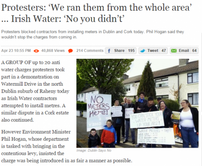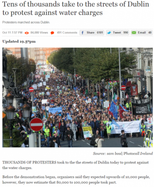 Oh yes, the big one. These protests started out in little pockets around the country -mainly local residents who were opposed to the controversial water charges demonstrating as workers tried to install the meters.