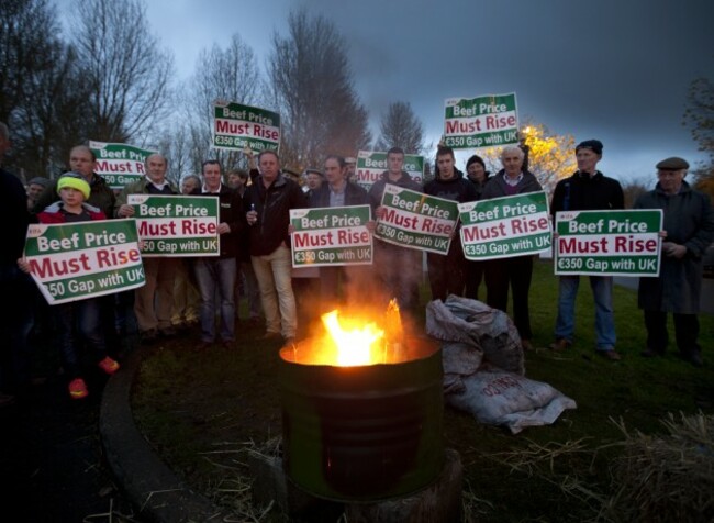 In October, farmers blockaded meat processing factories for 24 hours and in November for 48 hours, protesting the gap between Irish and UK cattle prices.