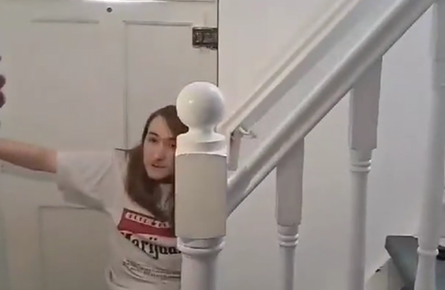 Tenant Aaron Madigan holding the door shut during the eviction last year. Aaron Madigan/The Journal
