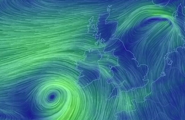 The wind picture off Ireland this evening. Earth Wind Map