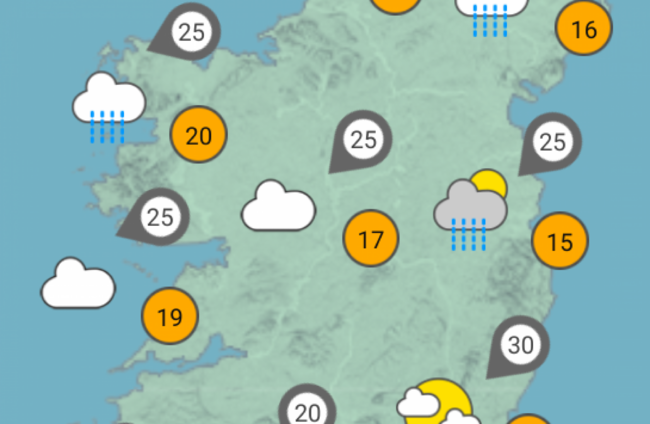 The showers are likely to be heaviest across the northwest, south Leinster and south Munster. It’s expected to be warm and humid with highest temperatures of 17 to 21 or 22 degrees.