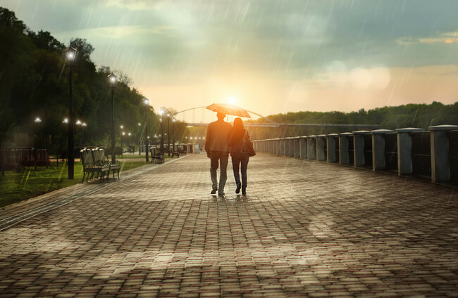 Two people walking in the rain (file photo) Shutterstock/Ilya Morozov