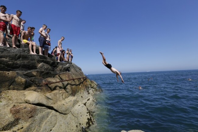Crowds enjoying the good weather today at Sandycove, south Dublin.