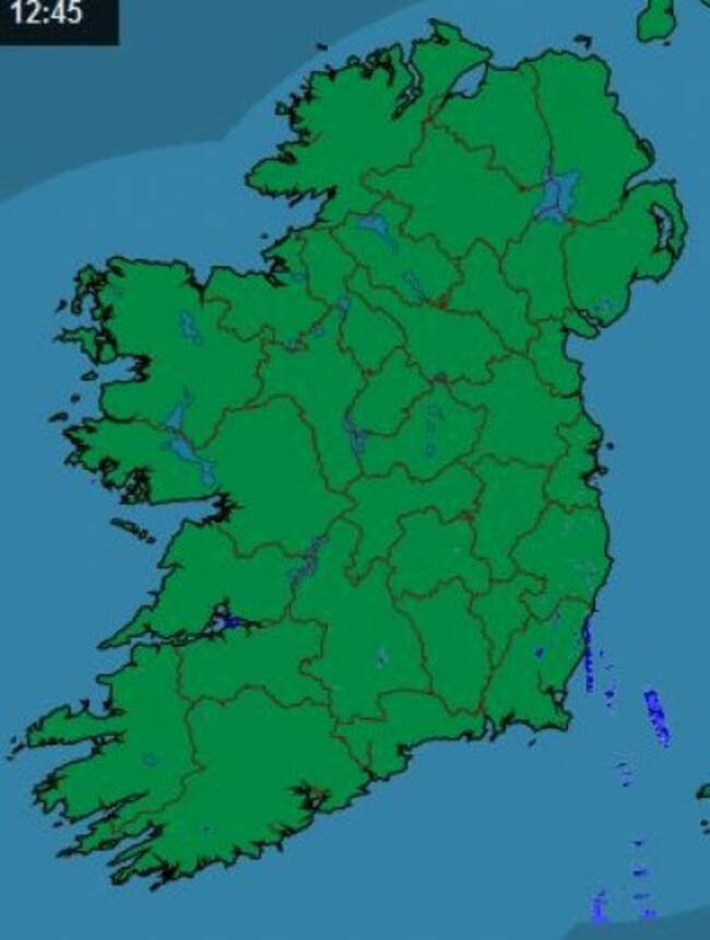 THE LATEST RAINFALL radar from Met Éireann shows barely a drop hitting the ground around the country this afternoon.