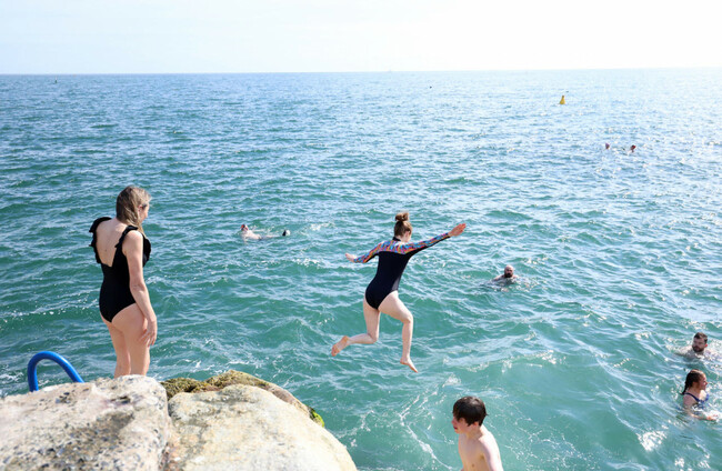Swimmers enjoying the good weather at Forty Foot in Sandycove, Dublin this morning. © RollingNews.ie