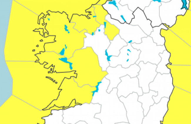 The ‘status yellow’ warning has been issued for Clare, Donegal, Galway, Leitrim, Mayo and Sligo. It will come into effect at 2am tomorrow and will be in place until 2pm in the afternoon.