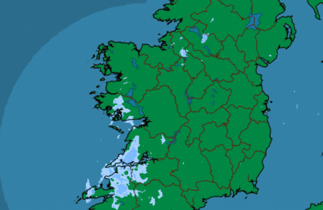 “Rain and drizzle along Atlantic coastal counties will extend eastwards through the course of the day, though amounts will be small and some places may well hold dry. Highest temperatures of 16 to 21 degrees with moderate westerly breezes.”