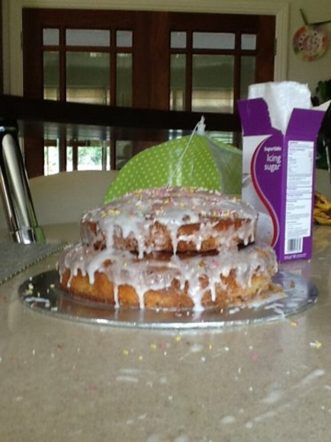 Caoimhe and Orlaith Gilmartin’s attempt at making an anniversary cake for their parents.  Holy God. We hope for Caoimhe and Orlaith’s sake they are three-year-old girls. We wouldn’t give that monstrosity to the dog!