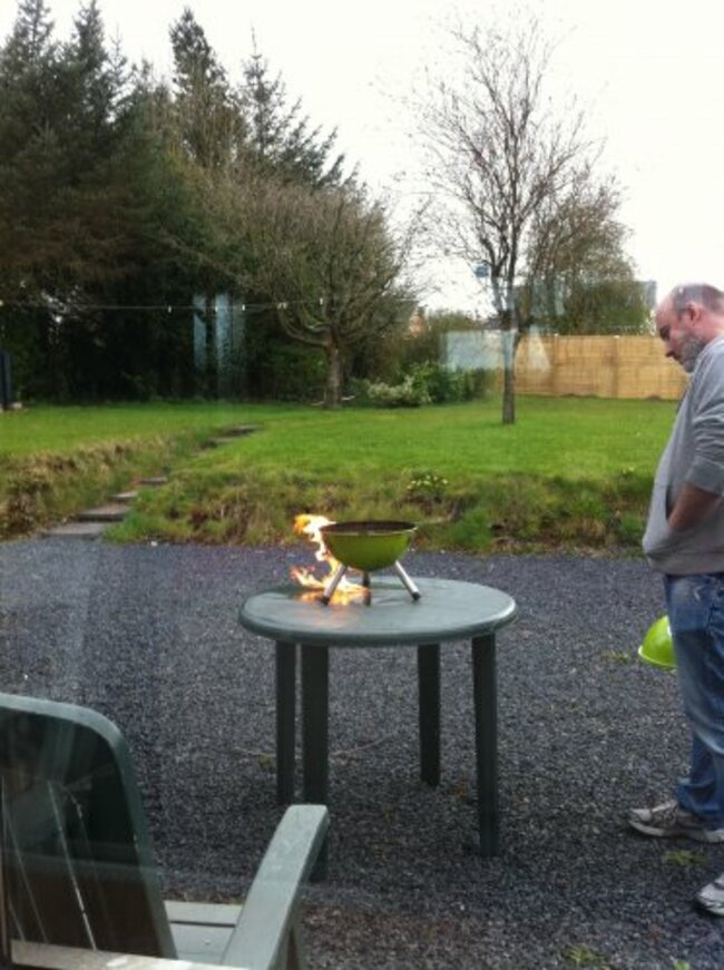 “Plastic tables plus BBQs don’t fair very well,” read the caption sent with this picture. No, they don’t.
