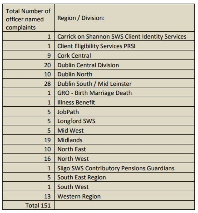 The highest number of complaints was in the Dublin South/Mid Leinster region, with 28 sent to the department during that period. There were also 20 complaints in the Dublin Central division and 19 in the Midlands.