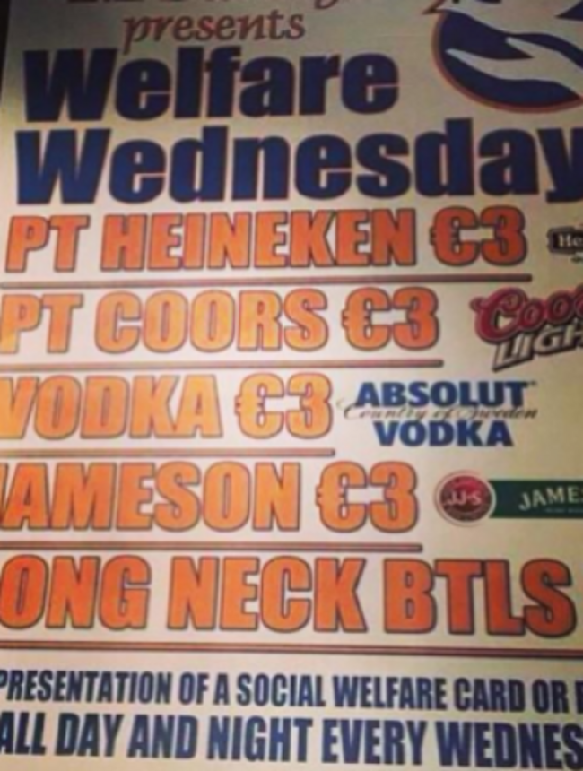 Read: ‘Welfare Wednesday’ pub: ‘We are in a high unemployment area and didn’t want to exclude locals’>