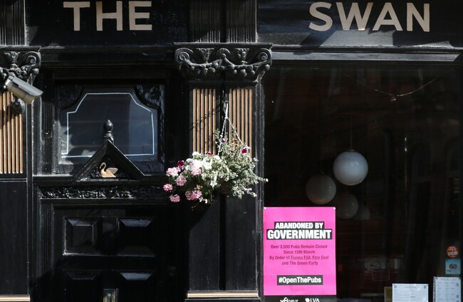 The Swan pub in Dublin city with an 'abandoned by government' poster outside it. Leah Farrell/RollingNews.ie