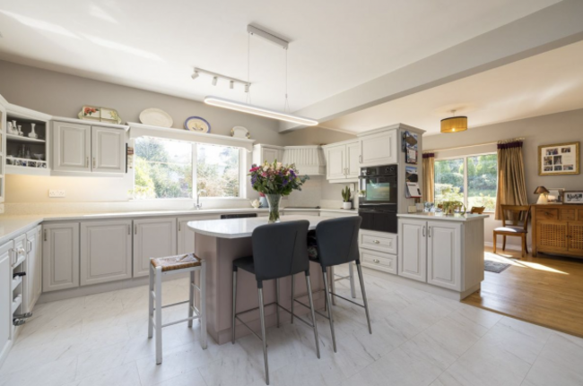 SURROUNDED BY ROLLING green hills yet just 3 km from a busy town, this truly eye-catching home, spread over two floors, is not short on space.