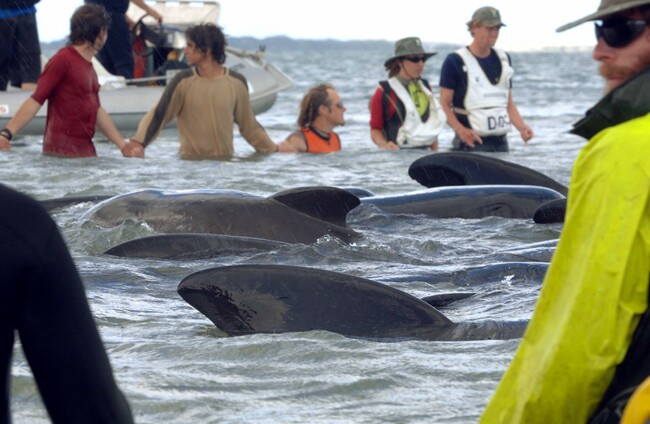 Andrew Lamason, regional operations manager for the Department of Conservation (DOC) told AFP the focus was on preventing the whales from reaching a beach already littered with more than 300 dead whales.