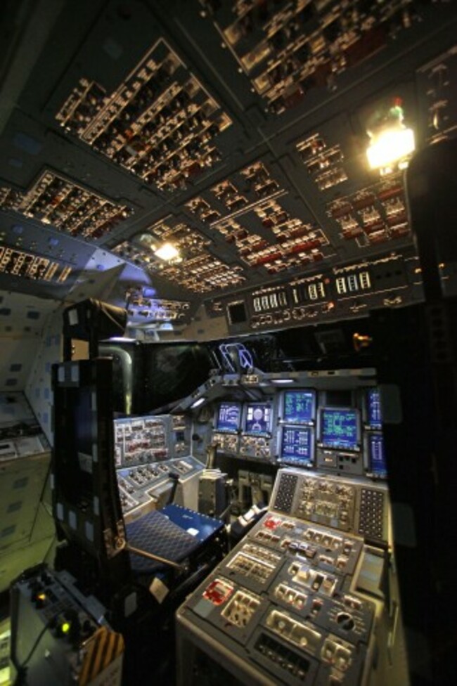 These photos, taken on Friday, show the pilot’s seat in the cockpit of the space shuttle. You’d have to be careful not to press the wrong button…