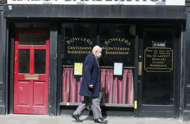 A man walks by a Dublin Barber shop as the nation waits to hear about reopening.