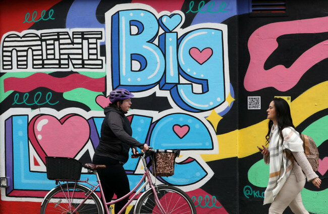 People pass by a Big Love mural in Dublin city centre Sasko Lazarov