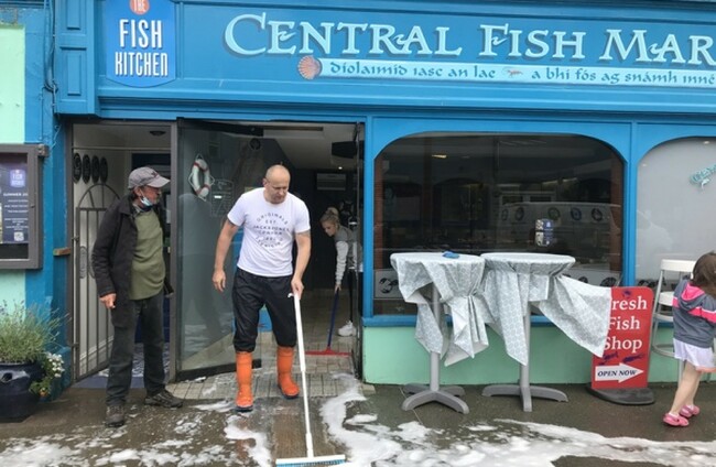 Clean up and repairs are taking place on New Street in Bantry, Co Cork today after flooding last night caused by Storm Francis. Eamonn Farrell/Rollingnews.ie