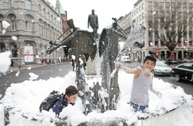 Julien Behal / Maxwell Photography ... Children play in suds in a fountain on Dame Street today. Julien Behal / Maxwell Photography ... Children play in suds in a fountain on Dame Street today. / Maxwell Photography ... Children play in suds in a fountain on Dame Street today.