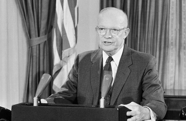 Former US president Dwight D. Eisenhower giving his famous farewell address in 1961. Alamy Stock Photo