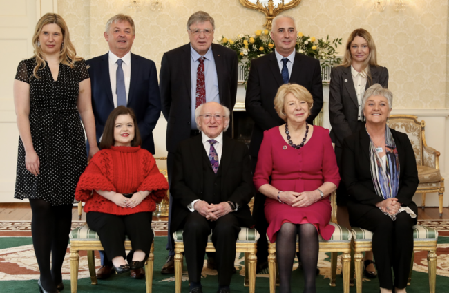 President Michael D Higgins pictured with his wife Sabina and the seven appointed members of his Council of State. President of Ireland