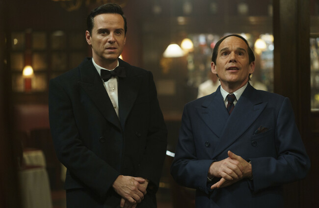 Andrew Scott as Richard Rodgers and Ethan Hawke as Lorenz Hart in Blue Moon Sony Pictures