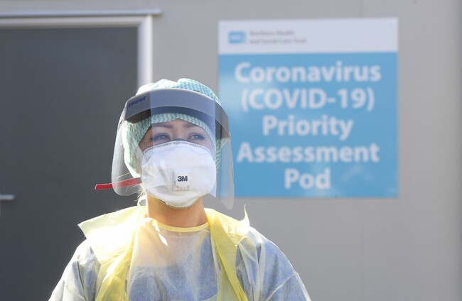 An emergency department nurse during a demonstration of Covid-19 testing in Antrim recently. Michael Cooper
