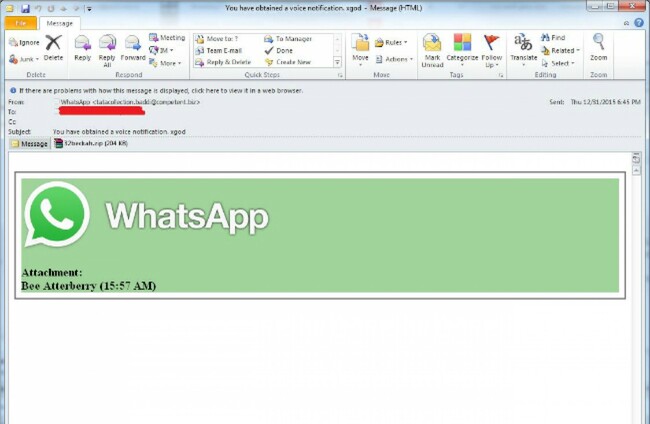 A WARNING HAS been issued about a new phishing attack that tricks people into downloading malware onto their computers from an email purporting to be from WhatsApp.